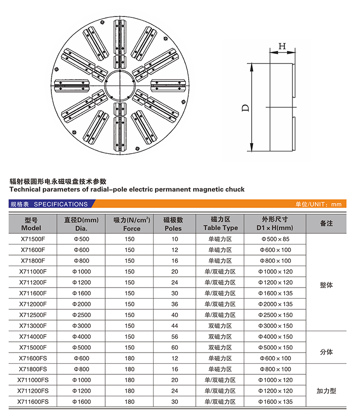 X71-F/FS 輻射極圓形電永磁吸盤