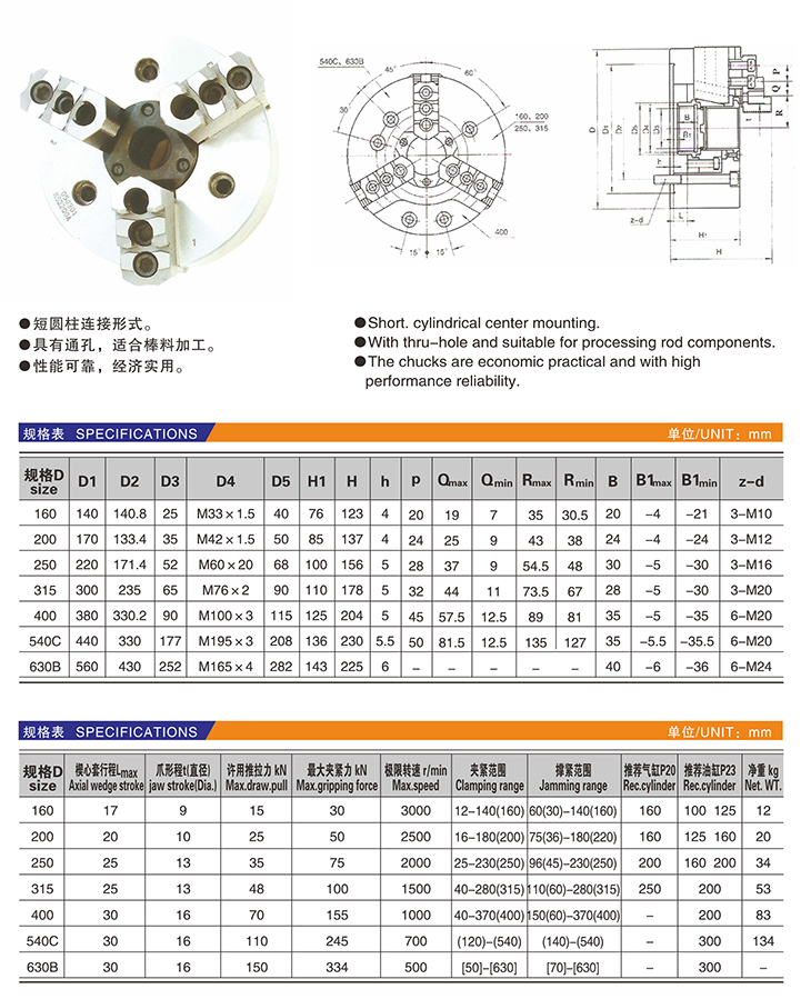 K52 楔形通孔動力卡盤